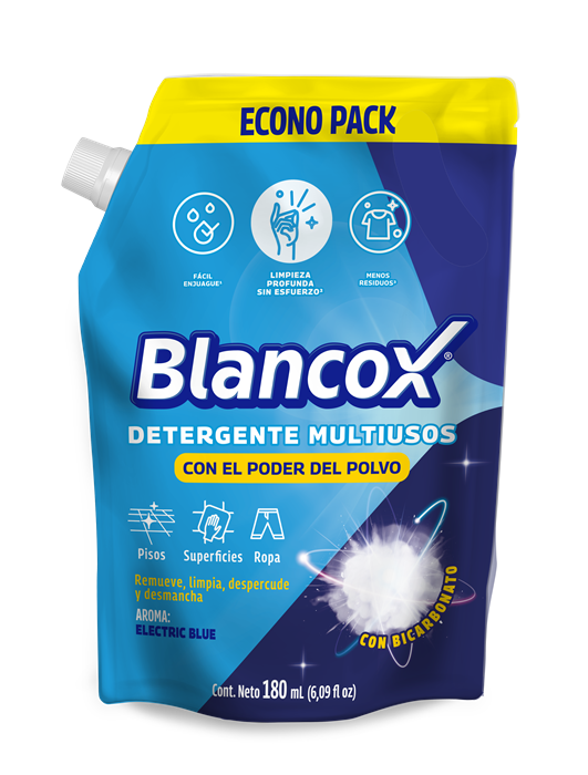 Disuelva la cantidad de BLANCOX® Detergente multiusos con el poder del polvo deseado en 5 litros de agua, utilice una esponja o cepillo suave para realizar la remoción sobre la superficie, luego enjuague.