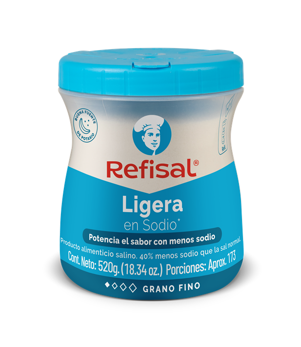 Sal Ligera es una sal reducida en sodio* que incluye potasio. Constituye una solución práctica para los consumidores sin sacrificar el sabor de las comidas, con 51% menos sodio, que la sal normal y es buena fuente de potasio.